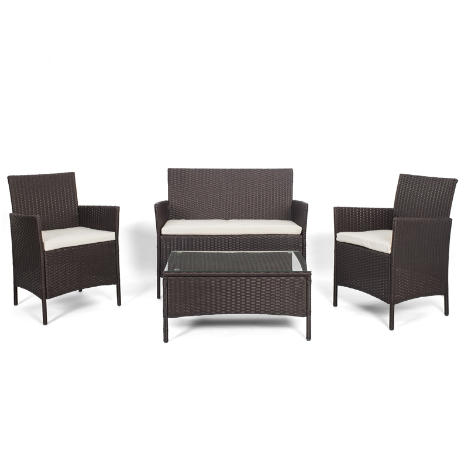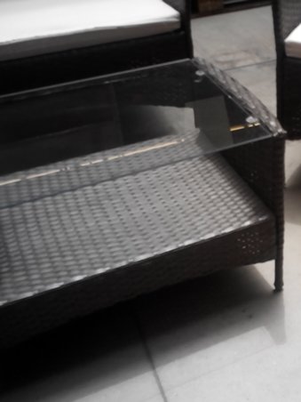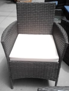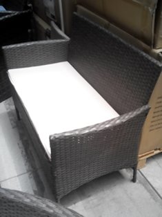 SALOTTO DA GIARDINO COMPOSTO DA DIVANO DUE POSTI,DUE POLTRONCINE UN TAVOLINO COMPRENSIVO DI CUSCINI.